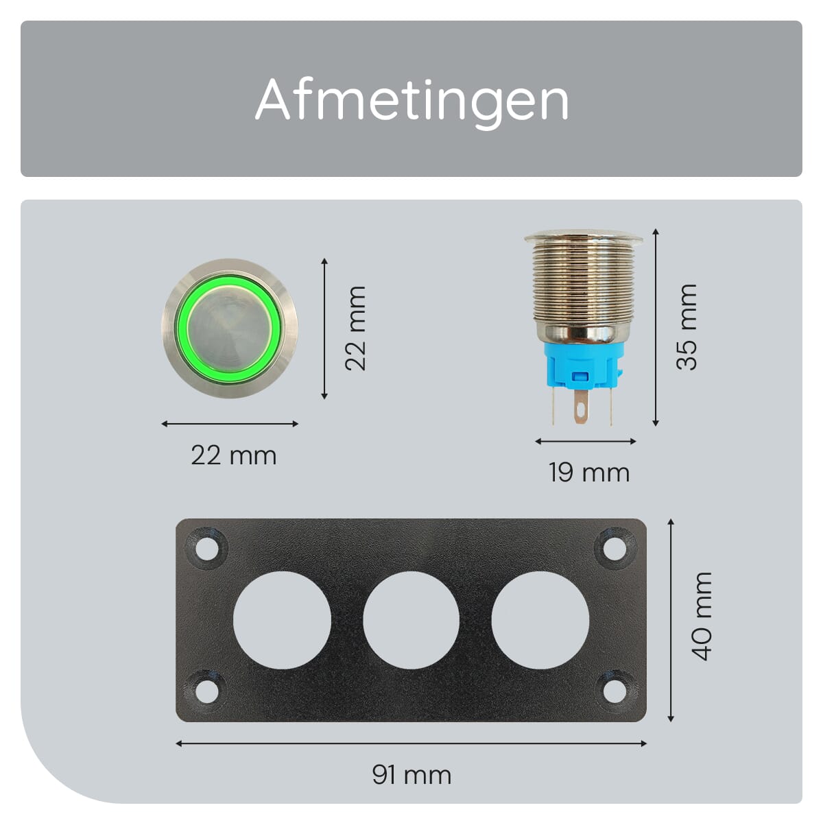 ProRide Inbouwpaneel Drievoudig Metalen Drukschakelaars