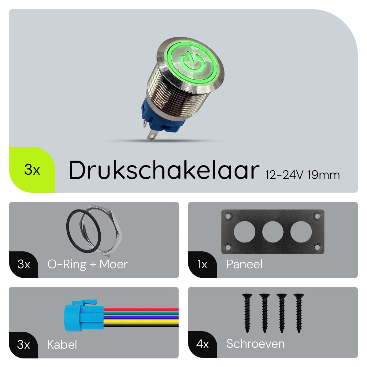 Transformeer je voertuig of project met het ProRide Inbouwpaneel, uitgerust met drievoudige metalen drukschakelaars. Deze hoogwaardige schakelaars bieden niet alleen functionaliteit, maar ook een stijlvolle uitstraling dankzij de zilveren afwerking en groene LED-indicatie. Perfect voor elke klus waarbij betrouwbaarheid en design hand in hand gaan.