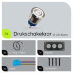 Het ProRide inbouwpaneel is ontworpen voor een spanning van 12-24V en biedt een eenvoudige ON-OFF functionaliteit. De drukschakelaars zijn 19mm groot en zijn voorzien van een LED-indicatie die oplicht wanneer de schakelaar is ingeschakeld.