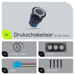 ProRide Metalen drukschakelaars in Drievoudig inbouwpaneel 12-24V ON-OFF – 19mm – IP67 – LED indicatie Wit