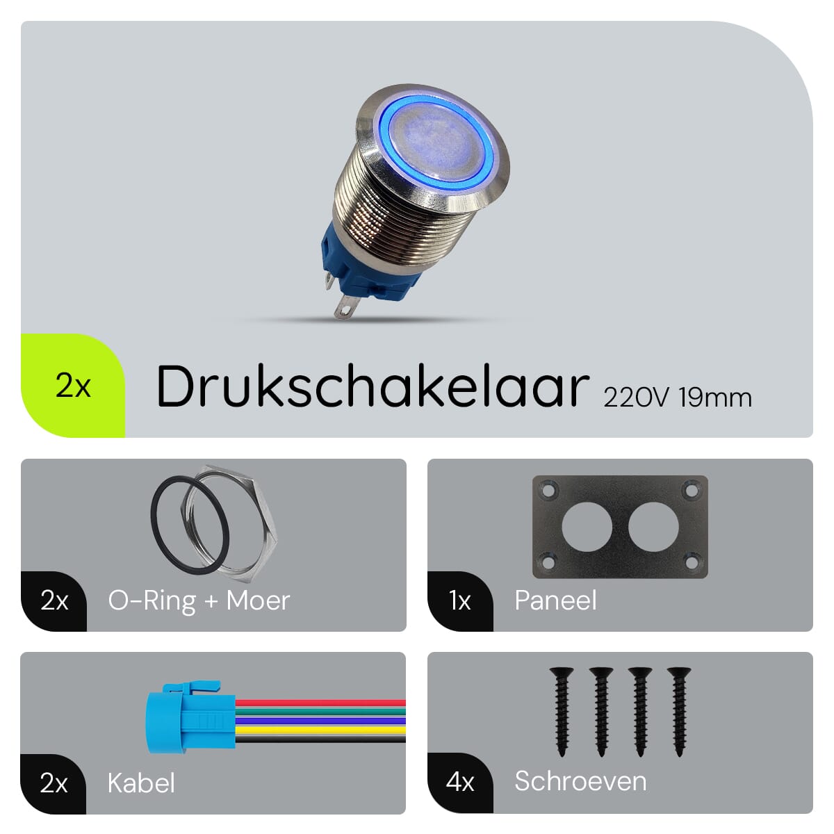 - Hoe groot zijn de schakelaars? De schakelaars hebben een diameter van 19mm, wat zorgt voor een compacte en efficiënte installatie.