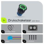 De ProRide inbouwpaneel schakelaars werken op 220V en zijn ontworpen voor aan/uit-functionaliteit. De groene LED-indicatie geeft aan wanneer de schakelaar is ingeschakeld, wat zorgt voor extra gebruiksgemak en veiligheid.