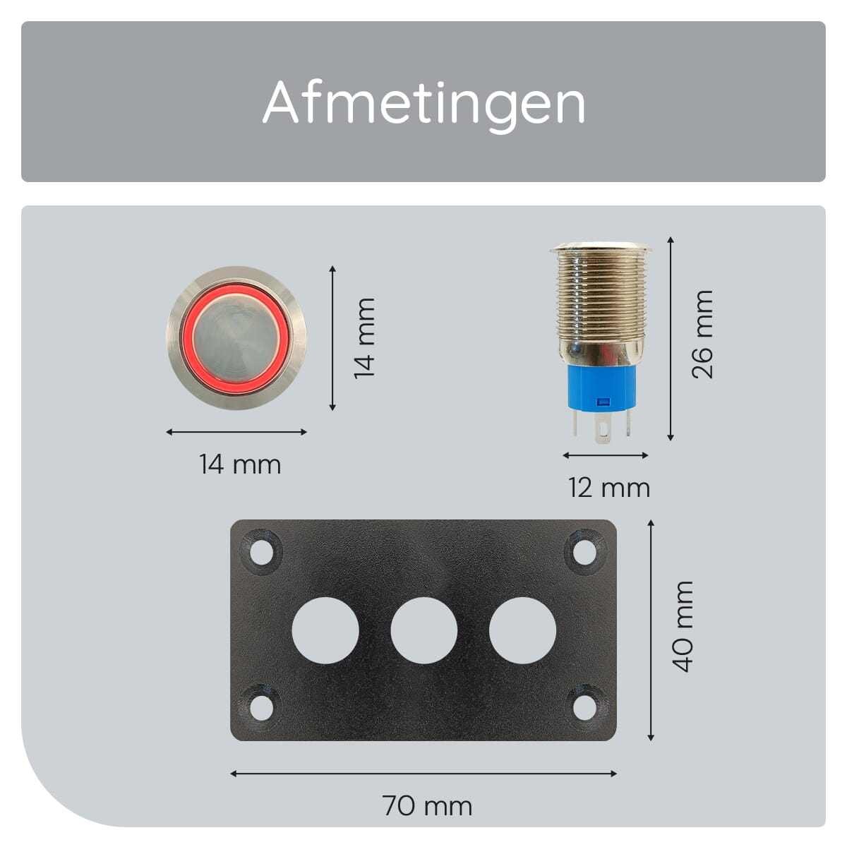 Transformeer je voertuig of project met het ProRide inbouwpaneel, uitgerust met drievoudige metalen drukschakelaars. Deze schakelaars zijn ontworpen voor ultieme betrouwbaarheid en stijl, perfect voor elke toepassing waar precisie en duurzaamheid vereist zijn.