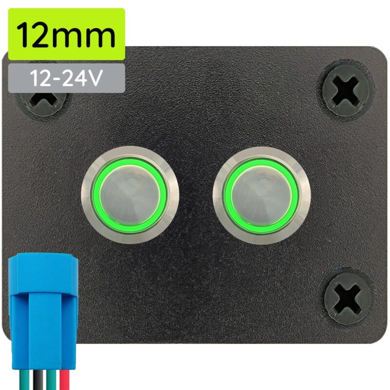 Transformeer je voertuig of project met het ProRide Inbouwpaneel, uitgerust met tweevoudige metalen drukschakelaars. Deze hoogwaardige schakelaars bieden niet alleen functionaliteit, maar ook een stijlvolle uitstraling dankzij de zilveren afwerking en groene LED-indicatie. Perfect voor iedereen die op zoek is naar betrouwbaarheid en esthetiek in één.