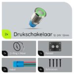- Hoe groot zijn de drukschakelaars? De drukschakelaars hebben een diameter van 12mm.