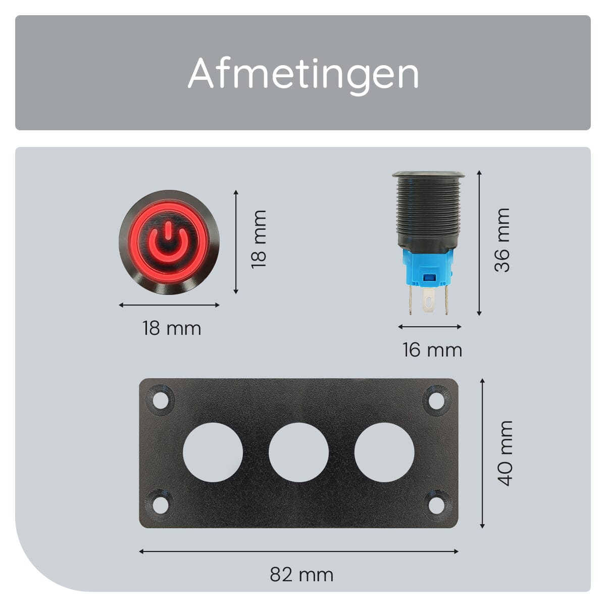 Transformeer je voertuig of project met het ProRide Inbouwpaneel, uitgerust met drievoudige metalen drukschakelaars. Deze hoogwaardige schakelaars zijn ontworpen voor ultieme betrouwbaarheid en stijl, perfect voor elke doe-het-zelf liefhebber die op zoek is naar kwaliteit en functionaliteit.