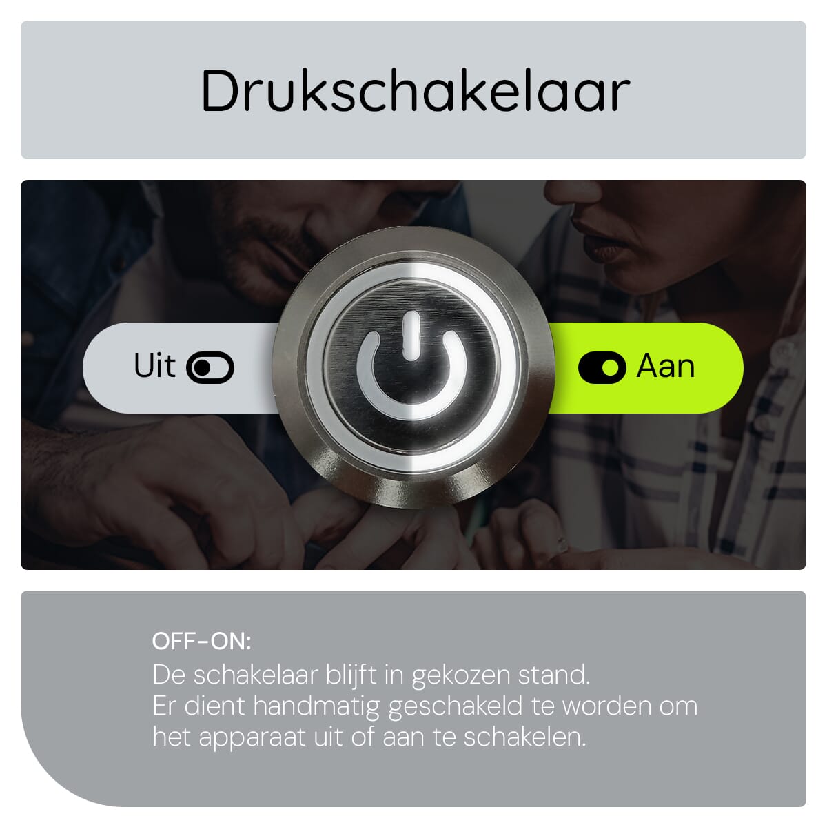 De ProRide inbouwpaneel schakelaars zijn gemaakt van duurzaam metaal, wat zorgt voor een lange levensduur en een moderne uitstraling. De zwarte drukknoppen met witte LED-indicatie geven een duidelijke visuele feedback wanneer de schakelaars in gebruik zijn.