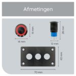 - Welke afmetingen hebben de schakelaars? De schakelaars hebben een diameter van 12mm.