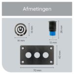 - Wat is de diameter van de drukschakelaars? De drukschakelaars hebben een diameter van 12mm.