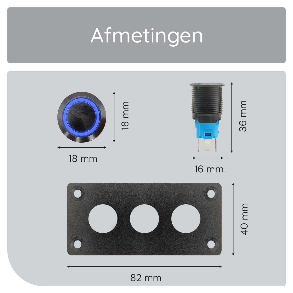 ProRide Metalen Pulsschakelaar 12-24V OFF-(ON) – Drievoudig Inbouwpaneel – 16mm – IP67 – LED indicatie Blauw