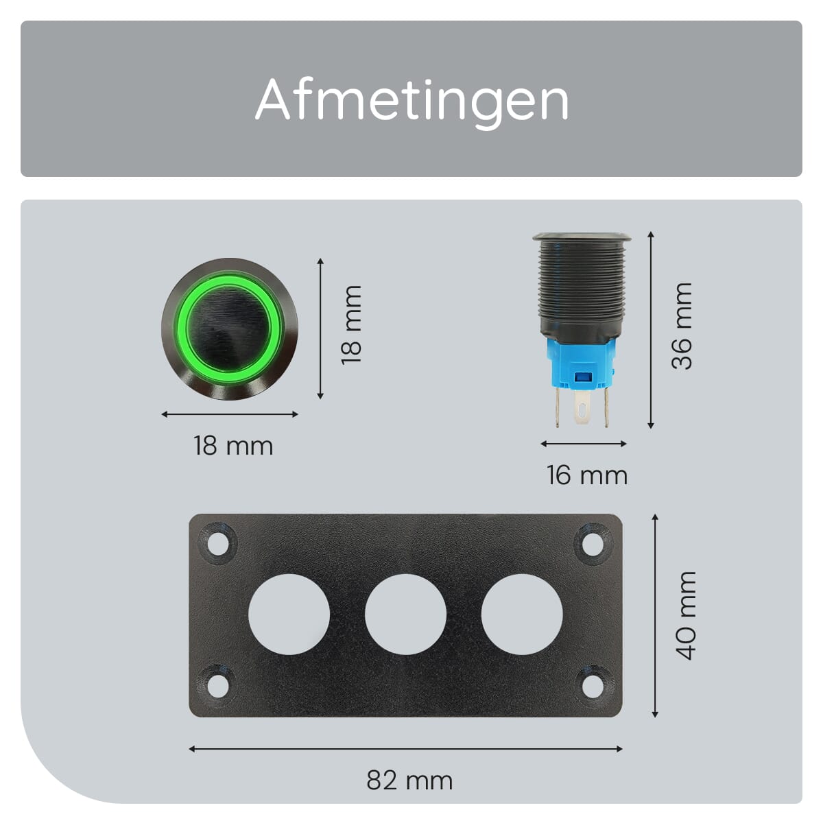 - Hoe groot is de schakelaar? De metalen pulsschakelaar heeft een diameter van 16mm.