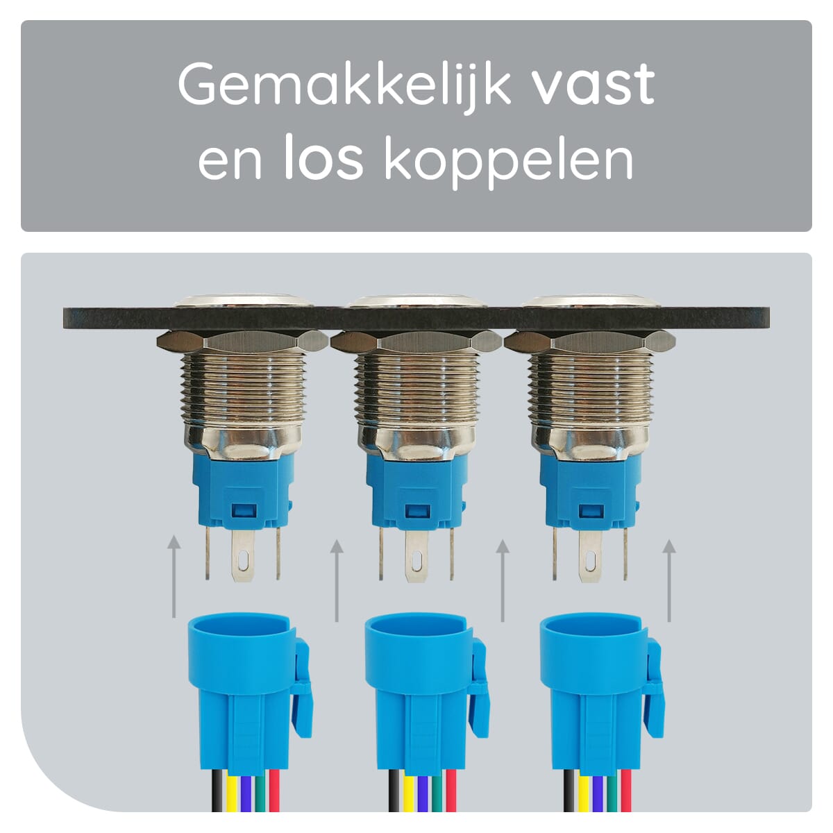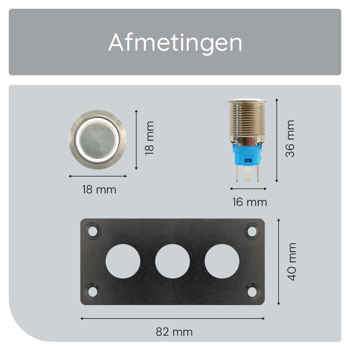 ProRide Inbouwpaneel Drievoudig met Metalen Pulsschakelaar