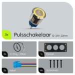 - Wat is de diameter van de schakelaar? De schakelaar heeft een diameter van 22mm, wat zorgt voor een stevige en betrouwbare pasvorm.