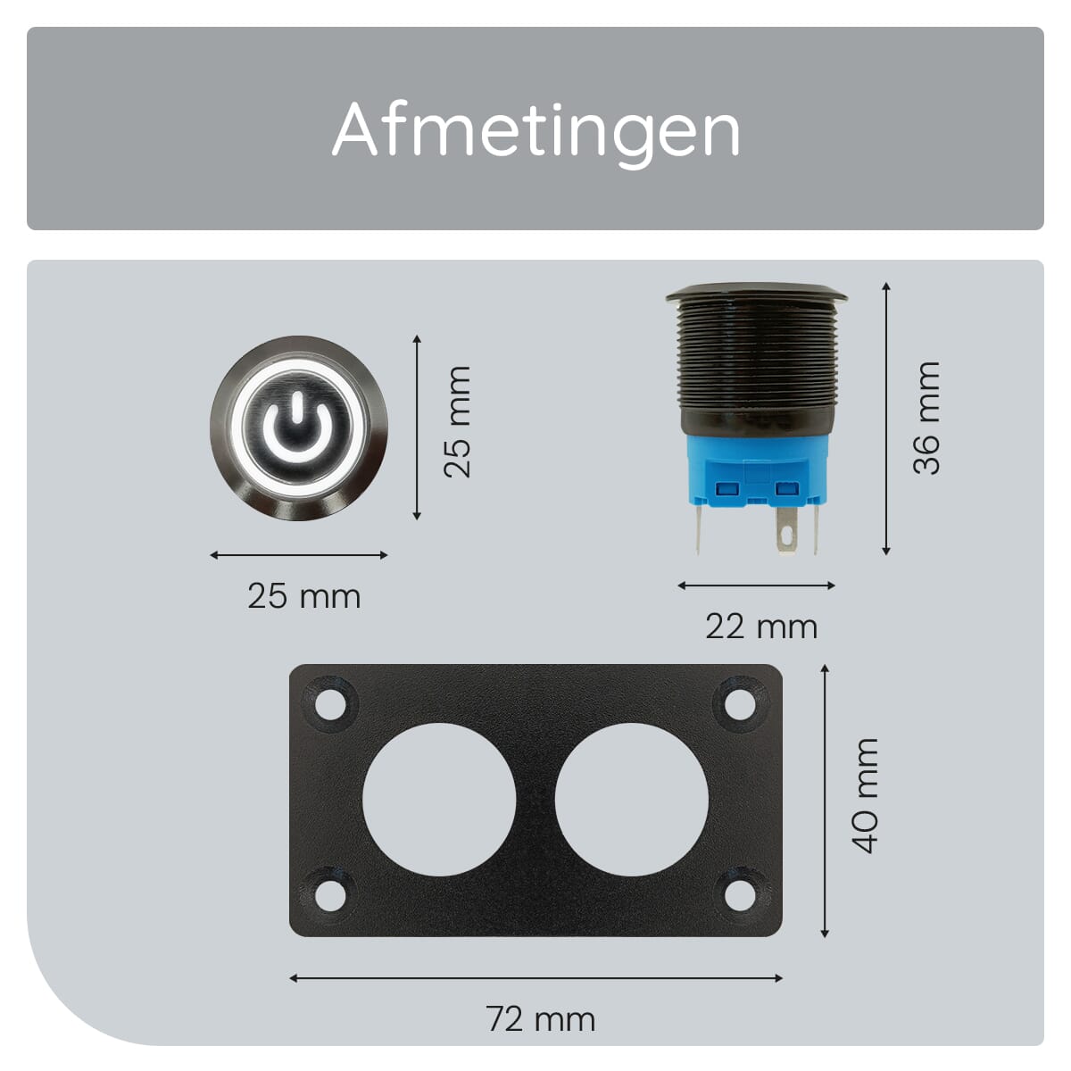 - Welke diameter heeft de schakelaar? De schakelaar heeft een diameter van 22mm.