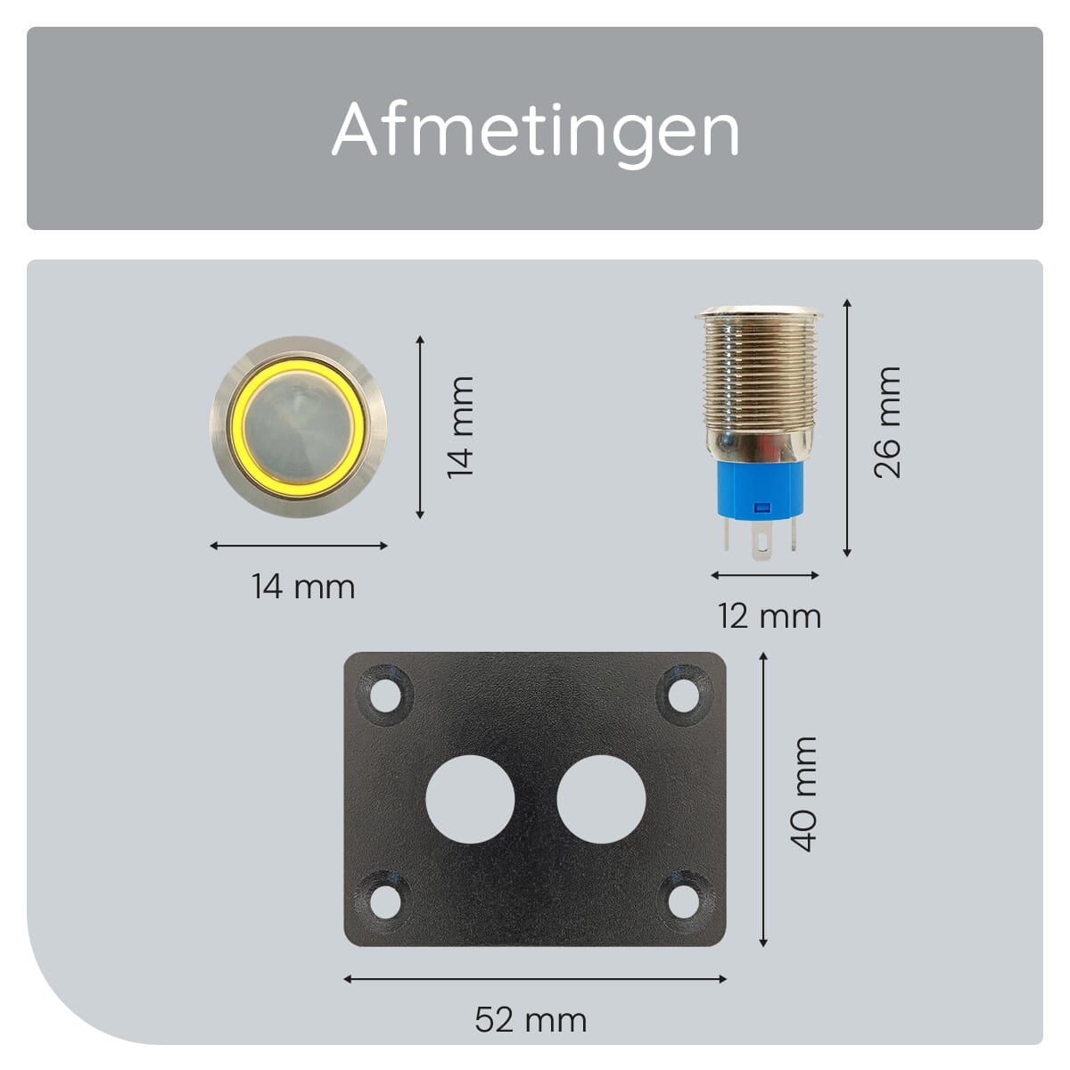 - Welke afmetingen heeft de schakelaar? De schakelaar heeft een diameter van 12mm.