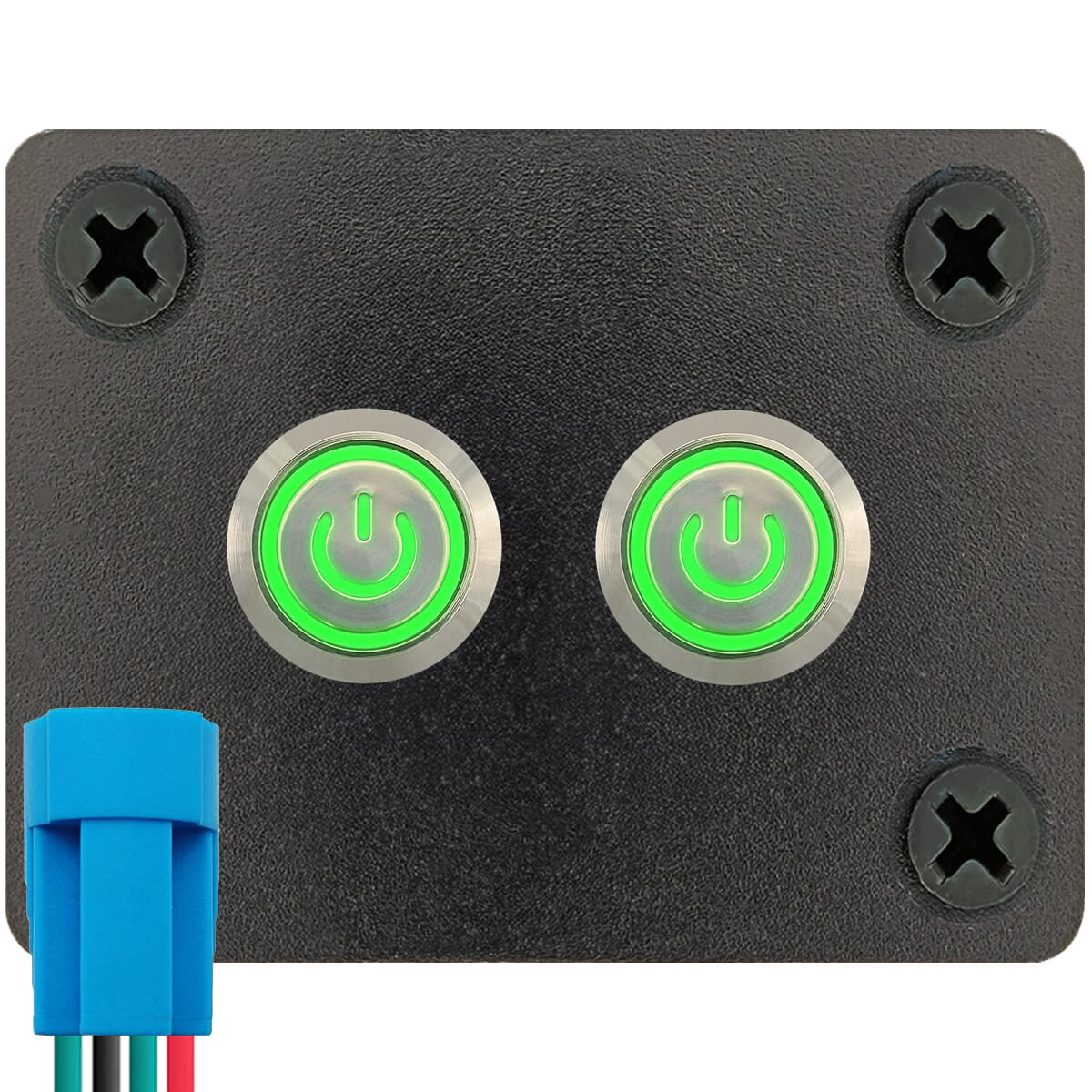 Transformeer je voertuig of project met het ProRide Inbouwpaneel Tweevoudig. Deze zilveren momentschakelaar biedt niet alleen functionaliteit, maar ook een stijlvolle uitstraling. Met zijn robuuste ontwerp en groene LED-indicatie is dit paneel een must-have voor elke doe-het-zelver.