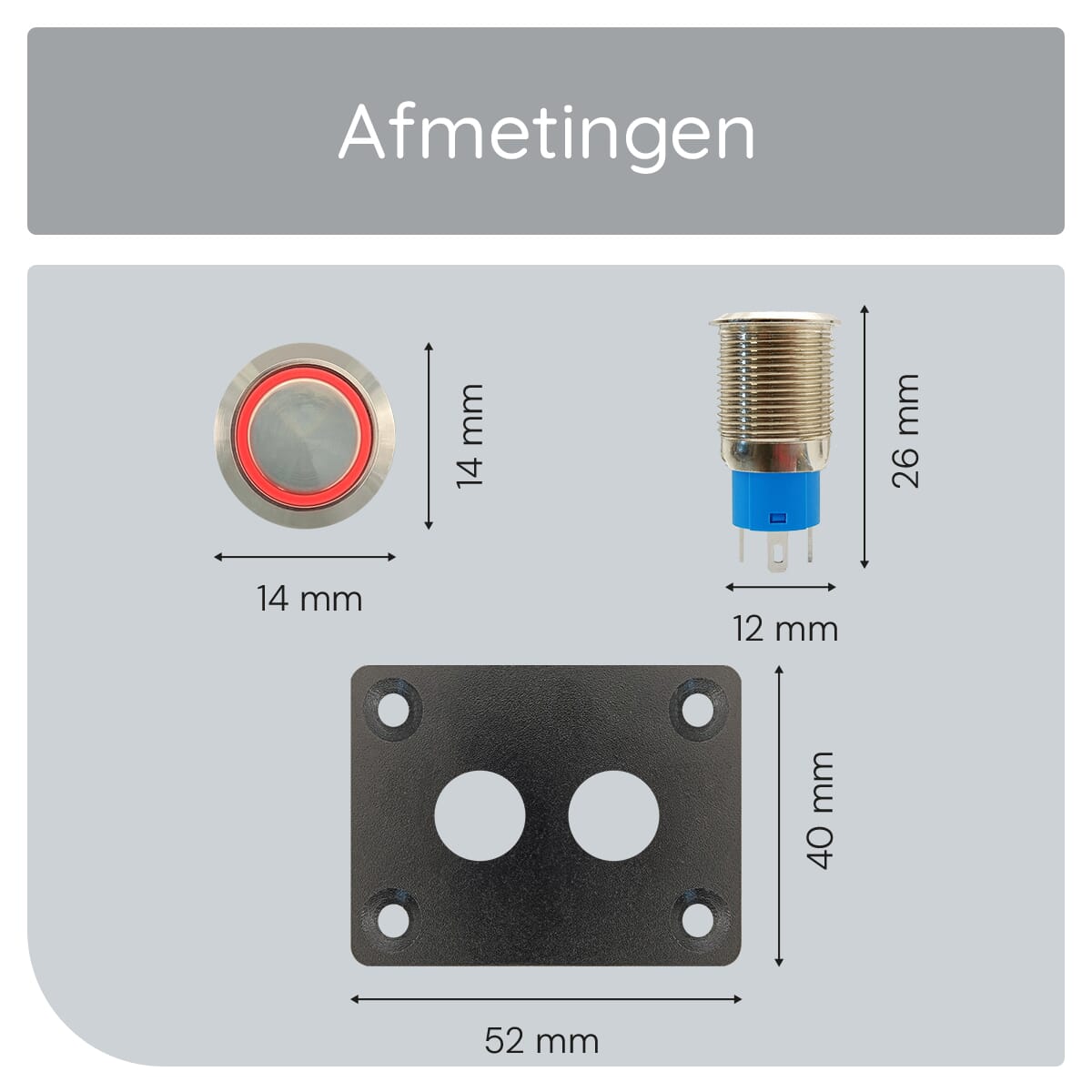 - Hoe groot is de schakelaar? De schakelaar heeft een diameter van 12mm.