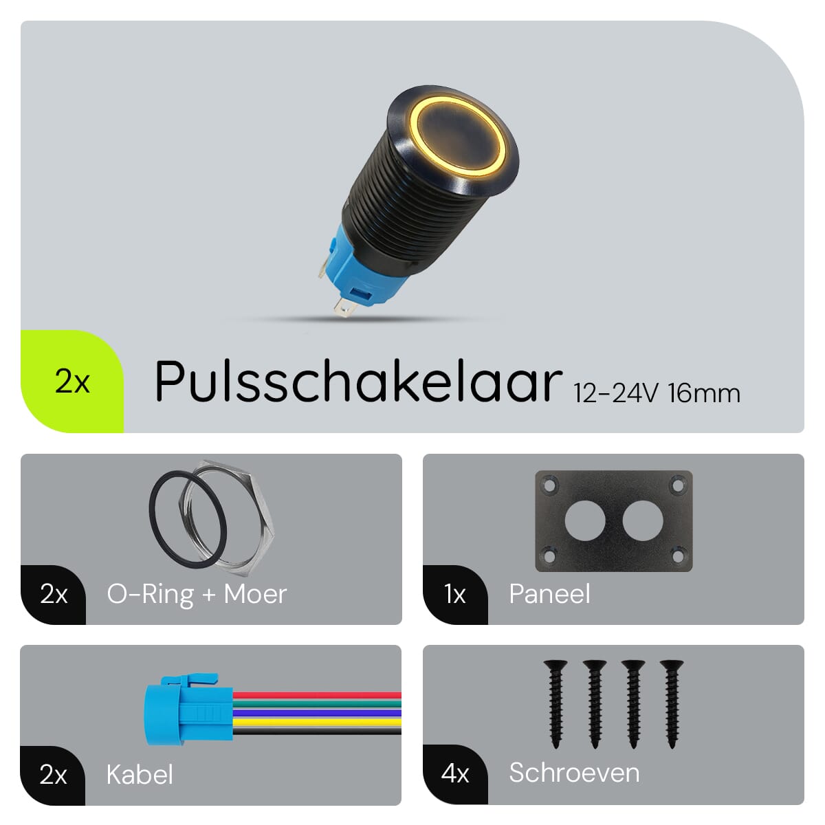 - Schakelaar: Metalen pulsschakelaar