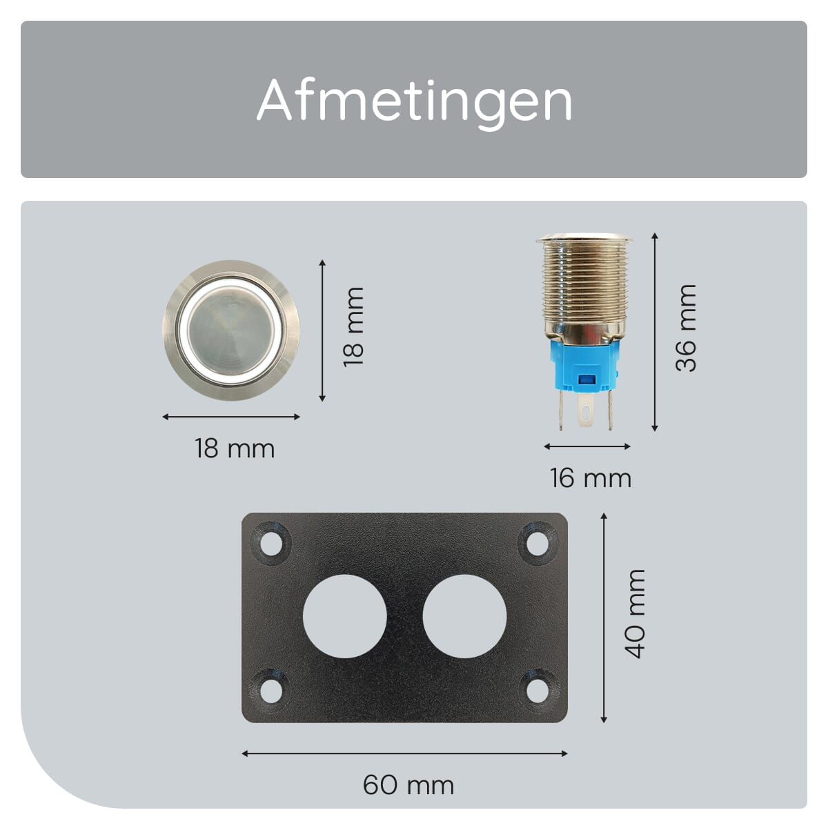 - Schakelaar: Metalen pulsschakelaar 16mm