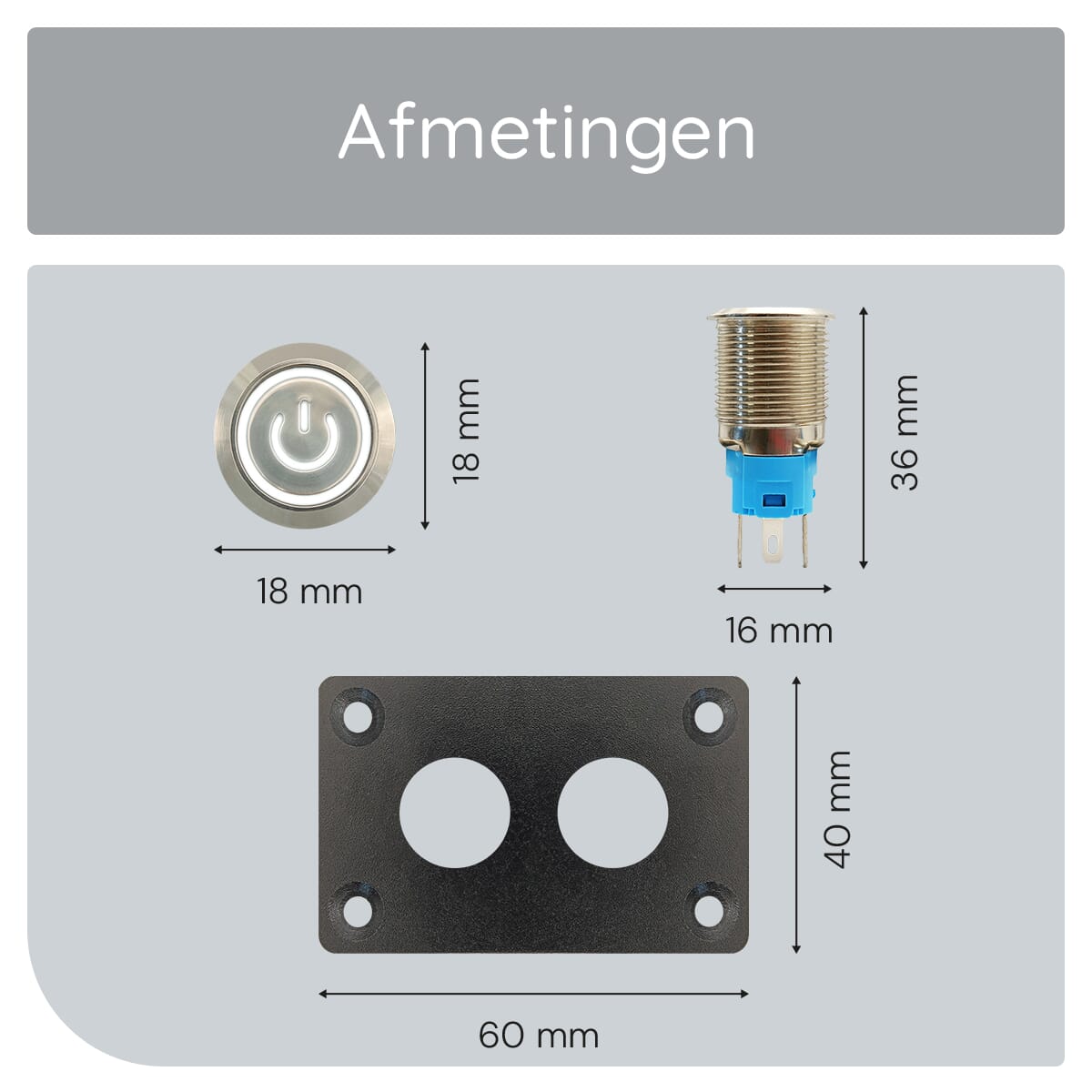 • Schakelaar: Metalen pulsschakelaar 16mm