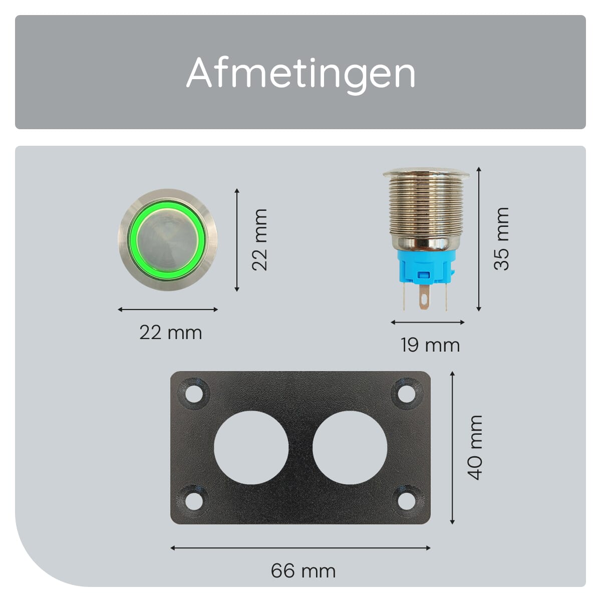 - Welke afmetingen heeft de schakelaar? De schakelaar heeft een diameter van 19mm.