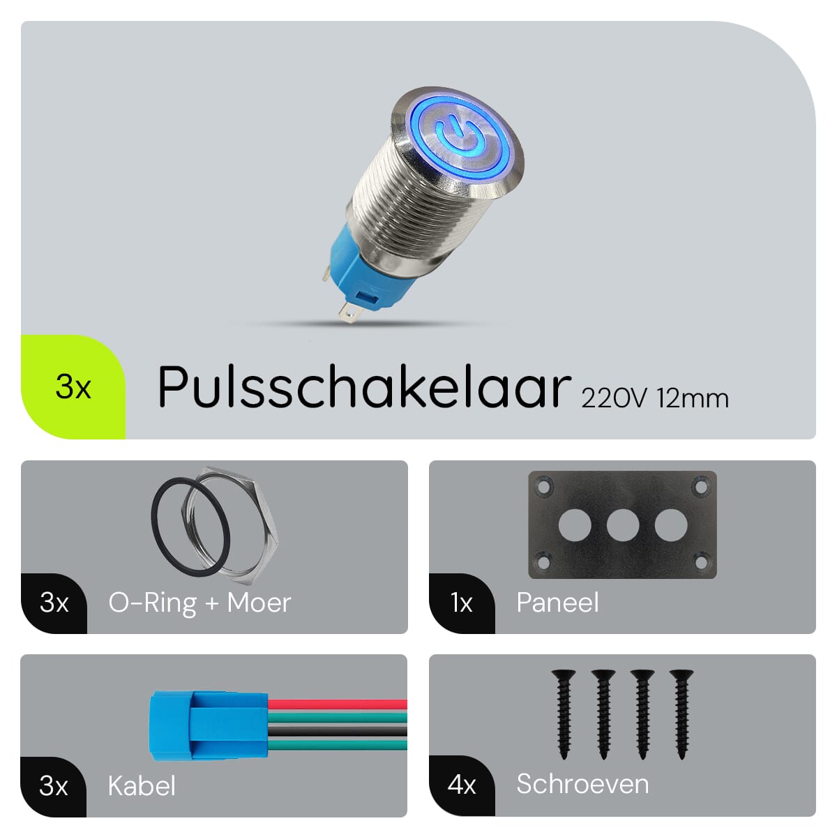 ProRide Inbouwpaneel Drievoudig met Metalen Pulsschakelaar