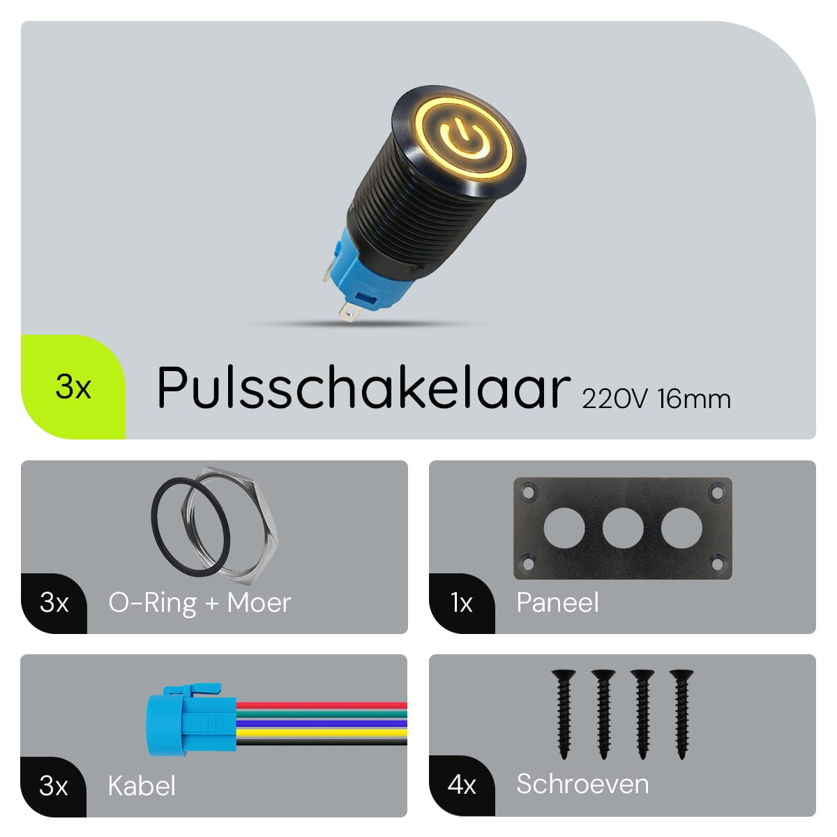 - Schakelaar diameter: 16mm