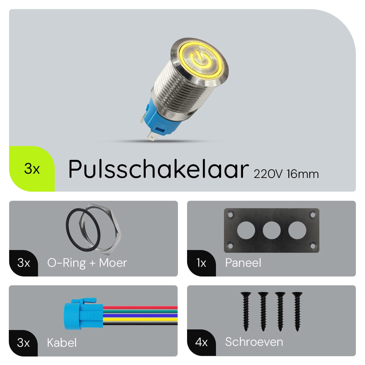 ProRide Inbouwpaneel Drievoudig met Metalen Pulsschakelaar