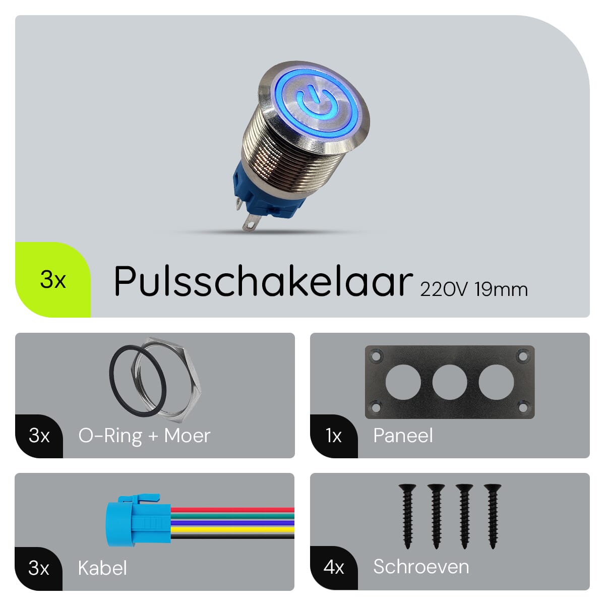 ProRide Inbouwpaneel Drievoudig met Metalen Pulsschakelaar