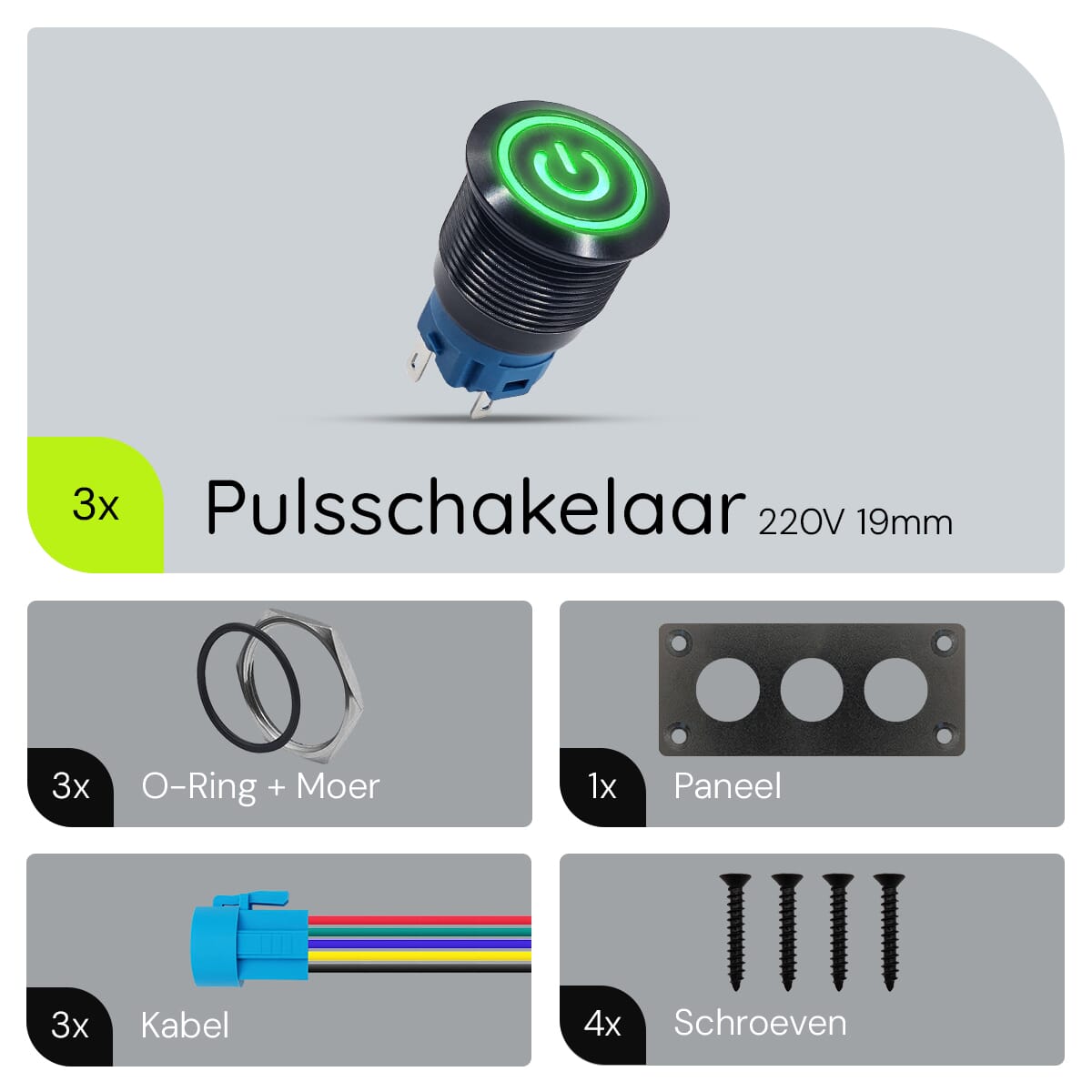 - Schakelaar: Metalen Pulsschakelaar 19mm