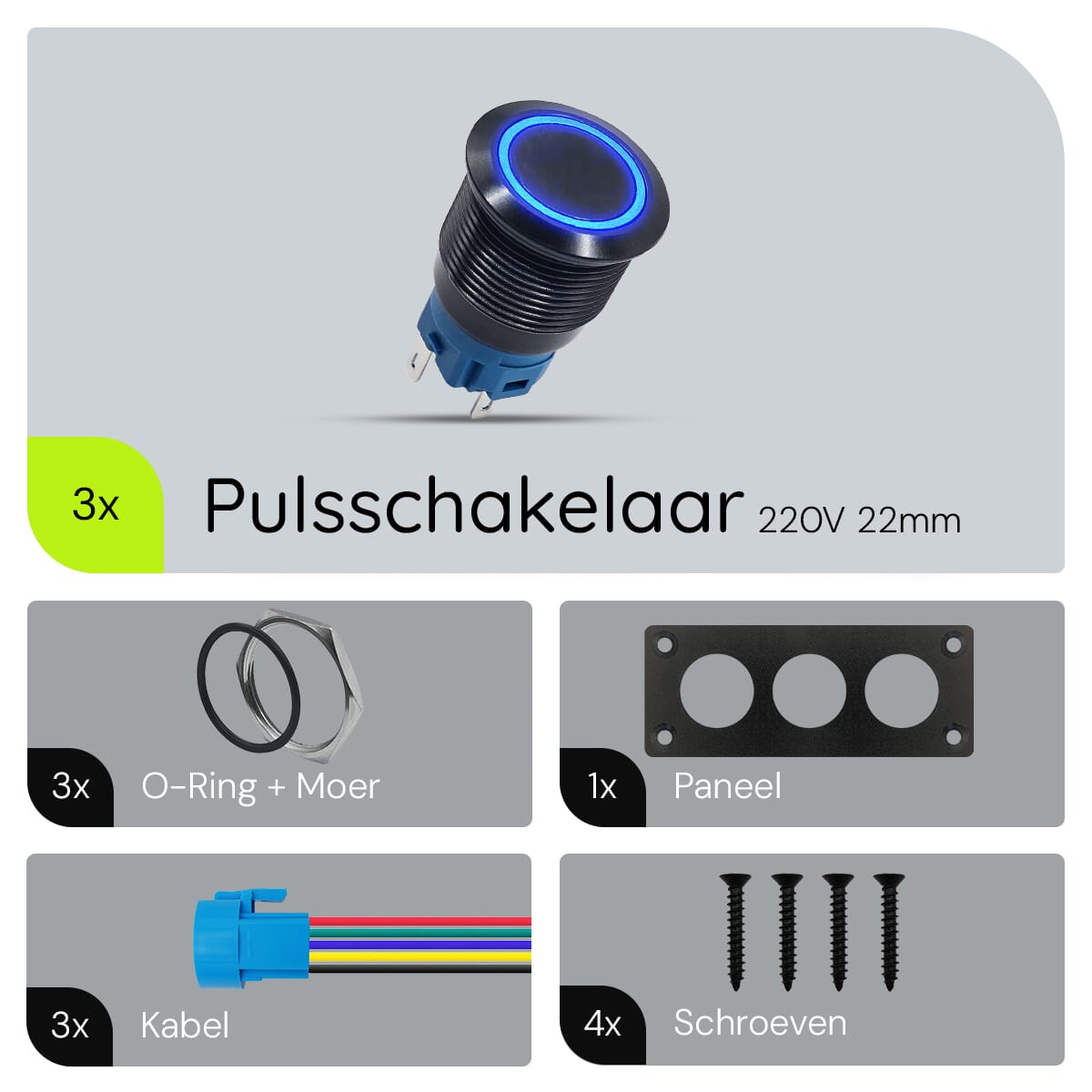- Wat is de diameter van de schakelaar? De schakelaar heeft een diameter van 22mm.