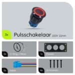 - Wat is de diameter van de schakelaar? De schakelaar heeft een diameter van 22mm, wat zorgt voor een perfecte pasvorm in standaard inbouwpanelen.