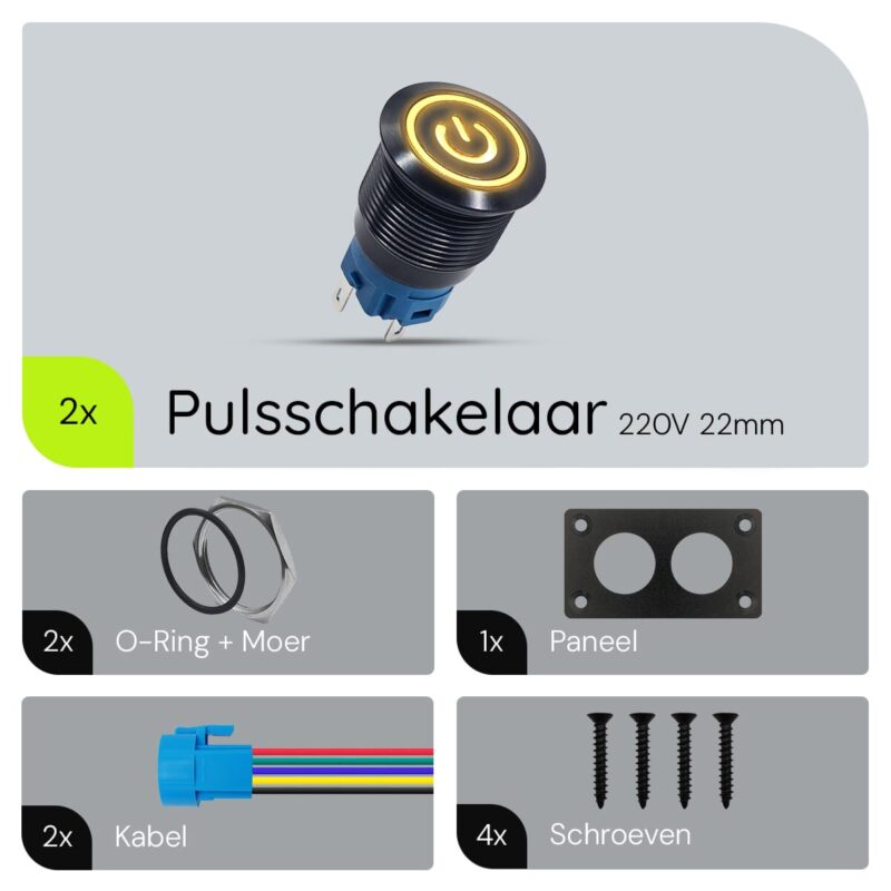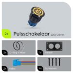 - Wat is de diameter van de schakelaar? De schakelaar heeft een diameter van 22mm, geschikt voor standaard inbouwpanelen.