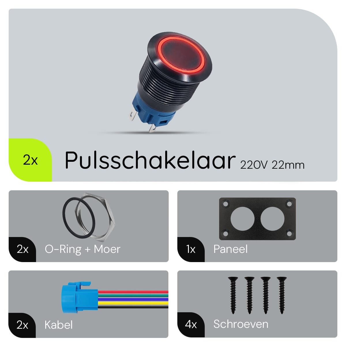 - Is de schakelaar geschikt voor buitengebruik? Ja, dankzij de IP67-classificatie is de schakelaar waterdicht en geschikt voor buitengebruik.