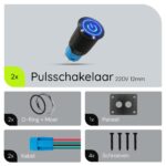 - Schakelaar: Metalen Pulsschakelaar 220V OFF-(ON)