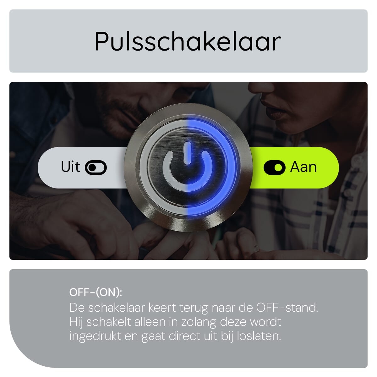 De metalen pulsschakelaar van 12mm is ontworpen voor duurzaamheid en betrouwbaarheid. Met een OFF-(ON) functie biedt het een momentane schakeloptie, ideaal voor toepassingen waar tijdelijke activering vereist is.
