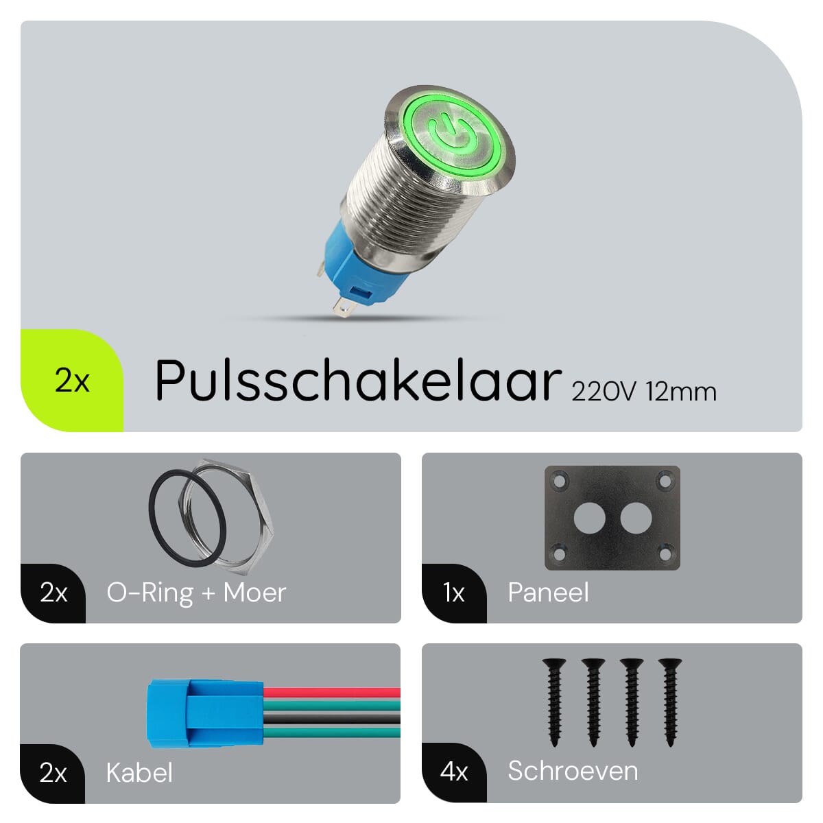 - Schakelaar: Metalen pulsschakelaar