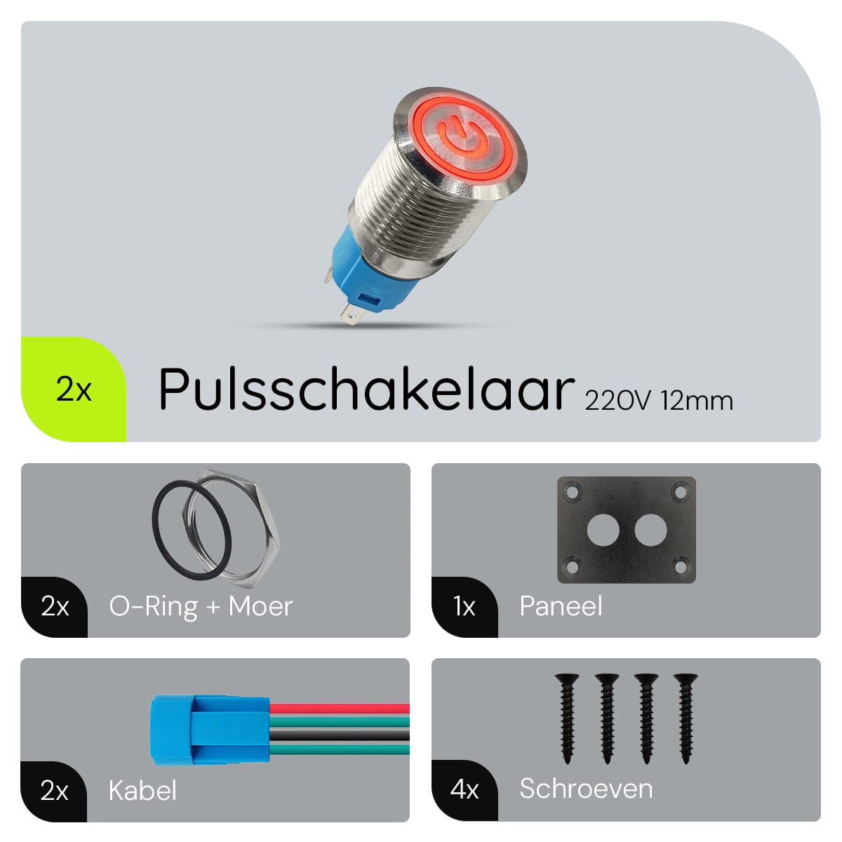 ProRide Inbouwpaneel Tweevoudig met Metalen Pulsschakelaar