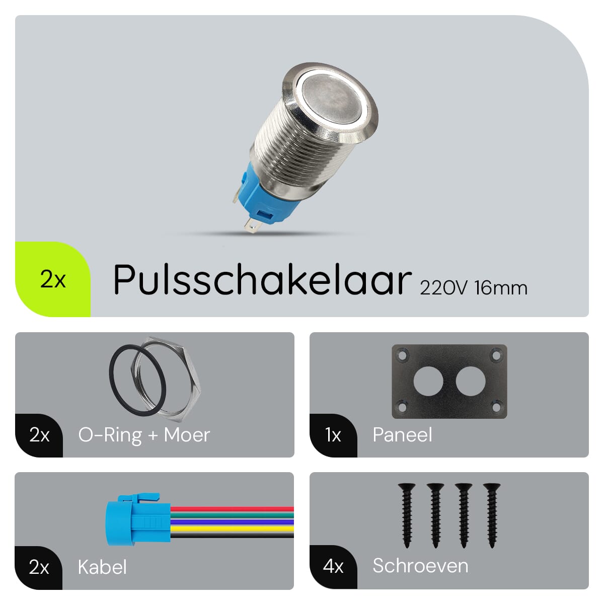 ProRide Inbouwpaneel Tweevoudig met Metalen Pulsschakelaar