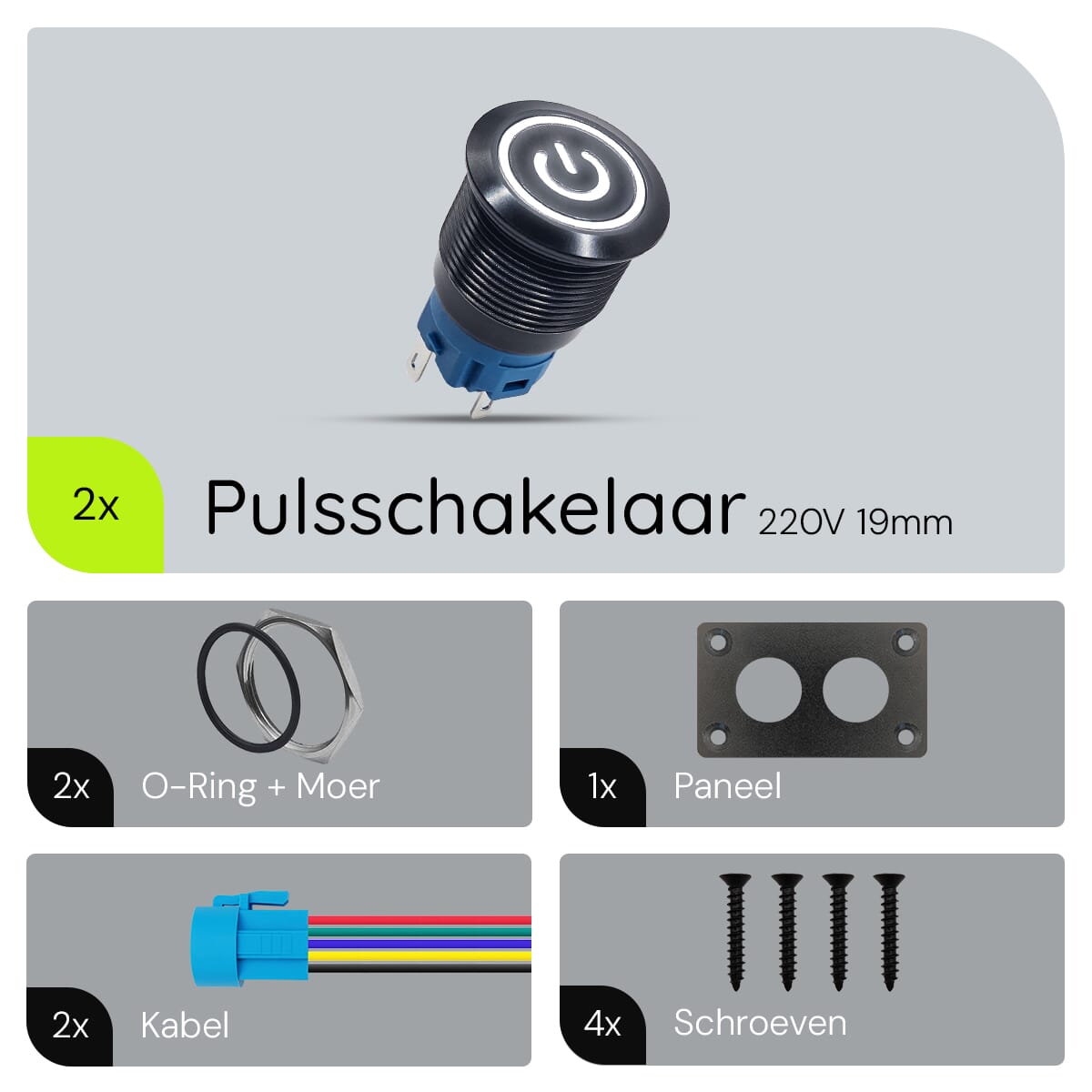 ProRide Inbouwpaneel Tweevoudig met Metalen Pulsschakelaar