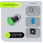 ProRide Metalen pulsschakelaar Inbouw 12V OFF-(ON) – 12mm – Momentschakelaar met Enkelvoudig inbouwpaneel en Aansluitkabel – Spatwaterdicht – 12V/24V – LED indicatie Groen