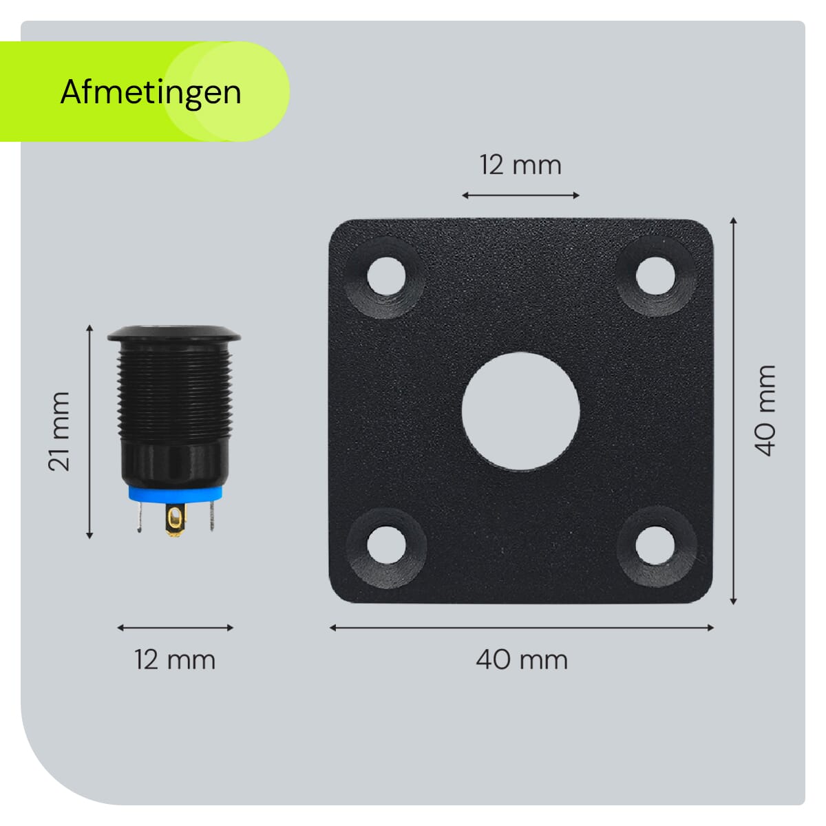 - Hoe groot is de schakelaar? De schakelaar heeft een diameter van 12mm.