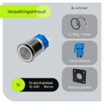 - Hoe groot is de schakelaar? De schakelaar heeft een diameter van 16mm, wat hem compact en gemakkelijk te installeren maakt.