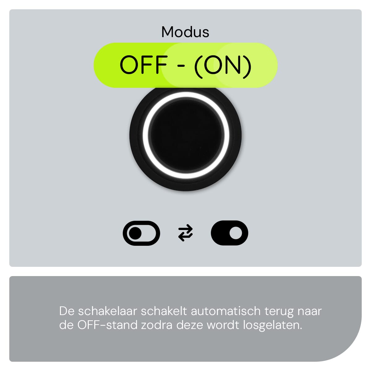 De ProRide Metalen pulsschakelaar werkt op een eenvoudige OFF-(ON) basis. Dit betekent dat de schakelaar alleen actief is wanneer je hem indrukt. Zodra je de knop loslaat, keert hij terug naar de uit-stand. Dit maakt het een ideale keuze voor toepassingen waar tijdelijke activering gewenst is.