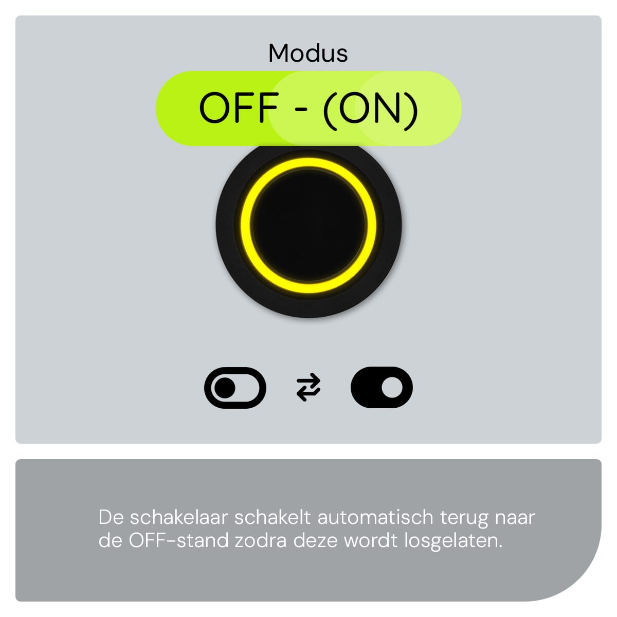 De ProRide Metalen pulsschakelaar werkt op een eenvoudige OFF-(ON) basis. Dit betekent dat de schakelaar alleen actief is wanneer je hem indrukt. Zodra je de knop loslaat, keert hij terug naar de uit-stand. Dit maakt hem ideaal voor toepassingen waar tijdelijke activering nodig is, zoals claxons, startknoppen of signaallichten.