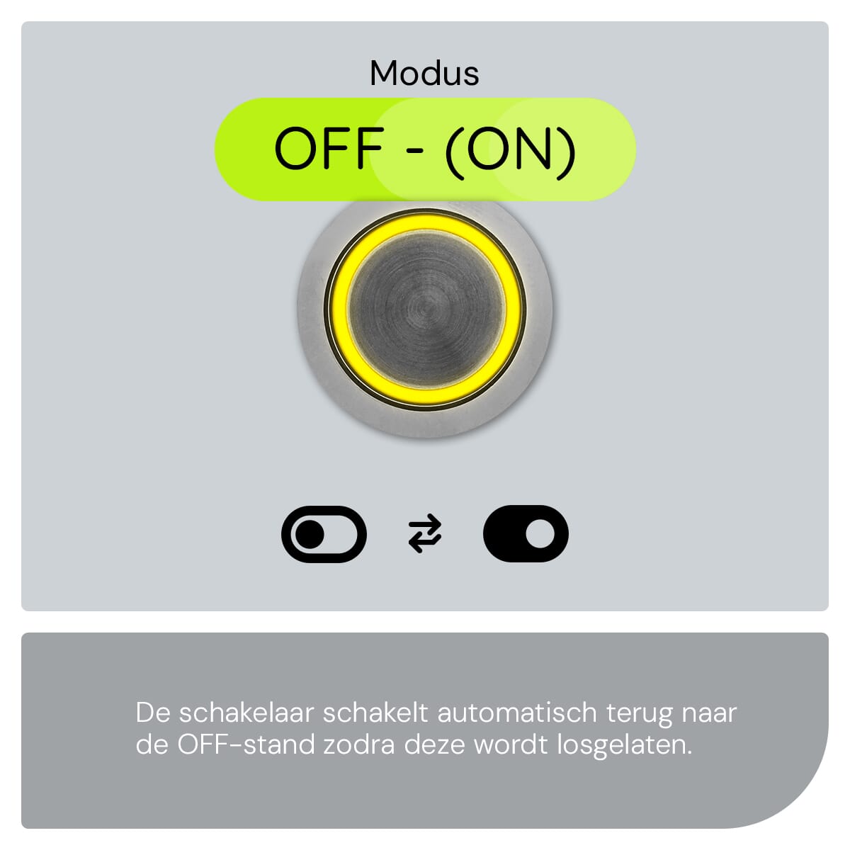 De ProRide Metalen pulsschakelaar werkt op een eenvoudige OFF-(ON) basis. Dit betekent dat de schakelaar alleen actief is wanneer je hem indrukt. Zodra je de knop loslaat, keert hij terug naar de uit-stand. Dit maakt hem ideaal voor toepassingen waar tijdelijke activering nodig is, zoals claxons, startknoppen of signaallichten.