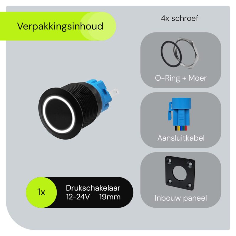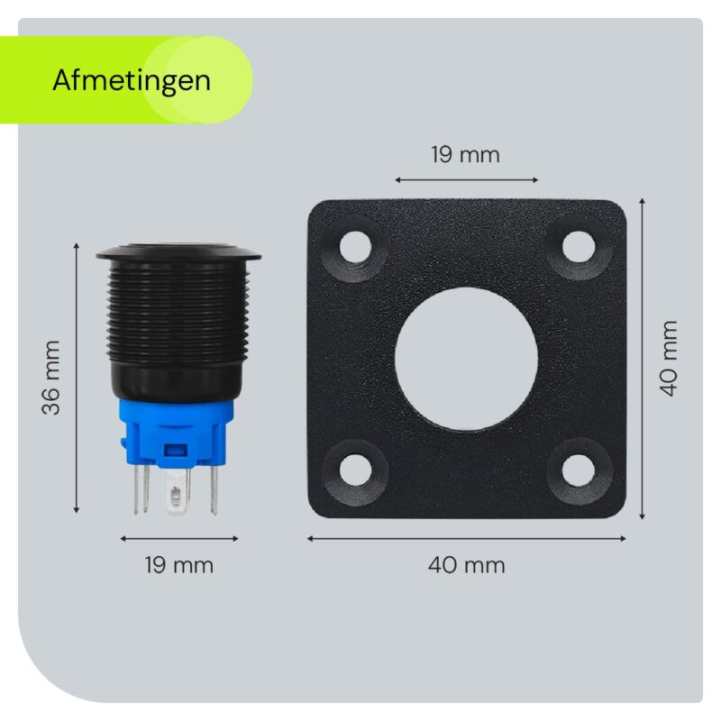 - Hoe groot is de schakelaar? De schakelaar heeft een diameter van 19mm.