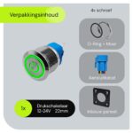 • Hoe groot is de schakelaar? De schakelaar heeft een diameter van 22mm, wat hem geschikt maakt voor diverse inbouwtoepassingen.