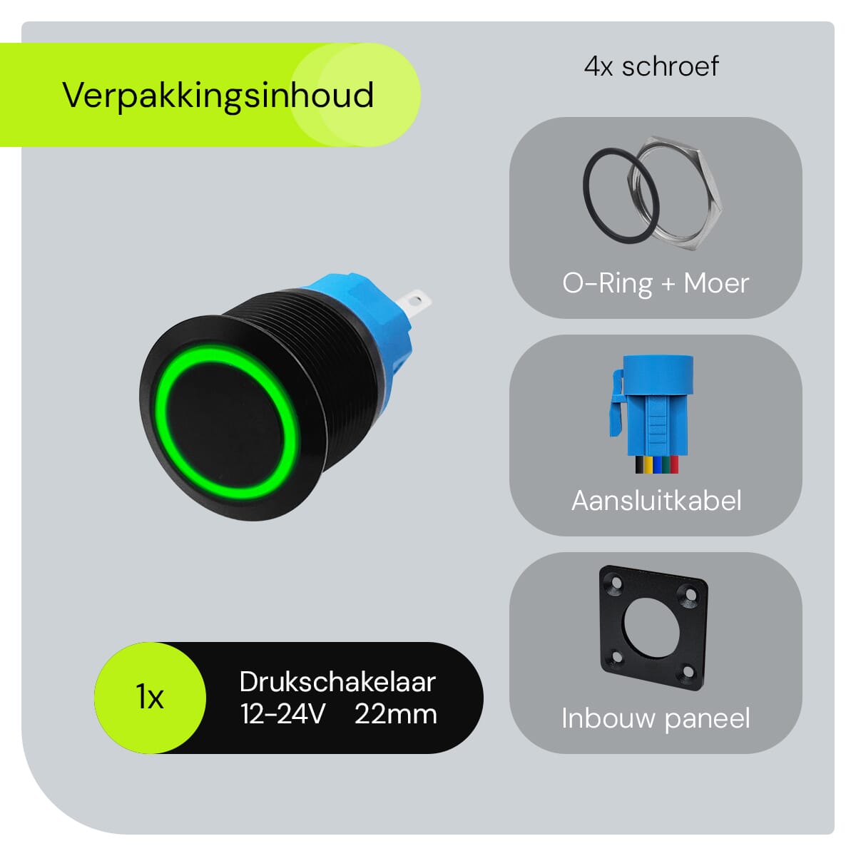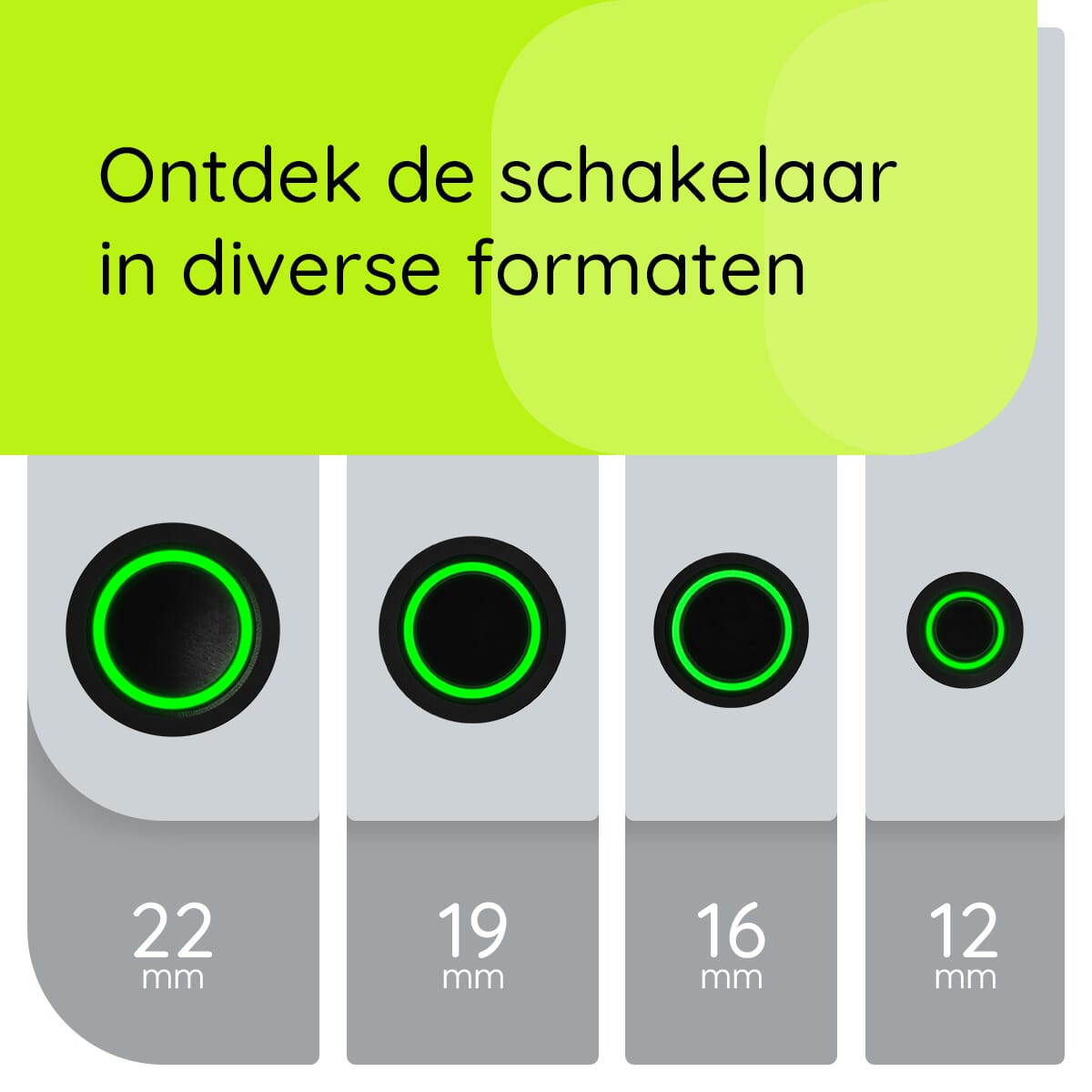 - Hoe groot is de schakelaar? De schakelaar heeft een diameter van 22mm, wat hem geschikt maakt voor diverse inbouwtoepassingen.