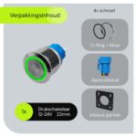 - Hoe groot is de schakelaar? De schakelaar heeft een diameter van 22mm, wat hem geschikt maakt voor diverse inbouwtoepassingen.